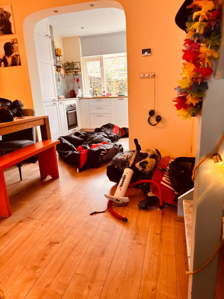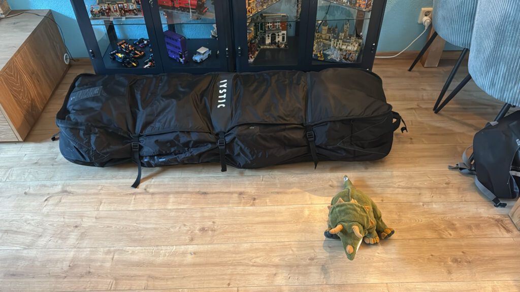 Gelukkig waren we beide zaterdag vrij om de laatste spullen in te pakken. Onno neemt natuurlijk als zijn kite spullen mee. Mocht er wind staan dan kan hij lekker het water op.