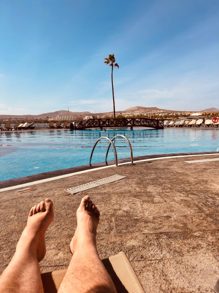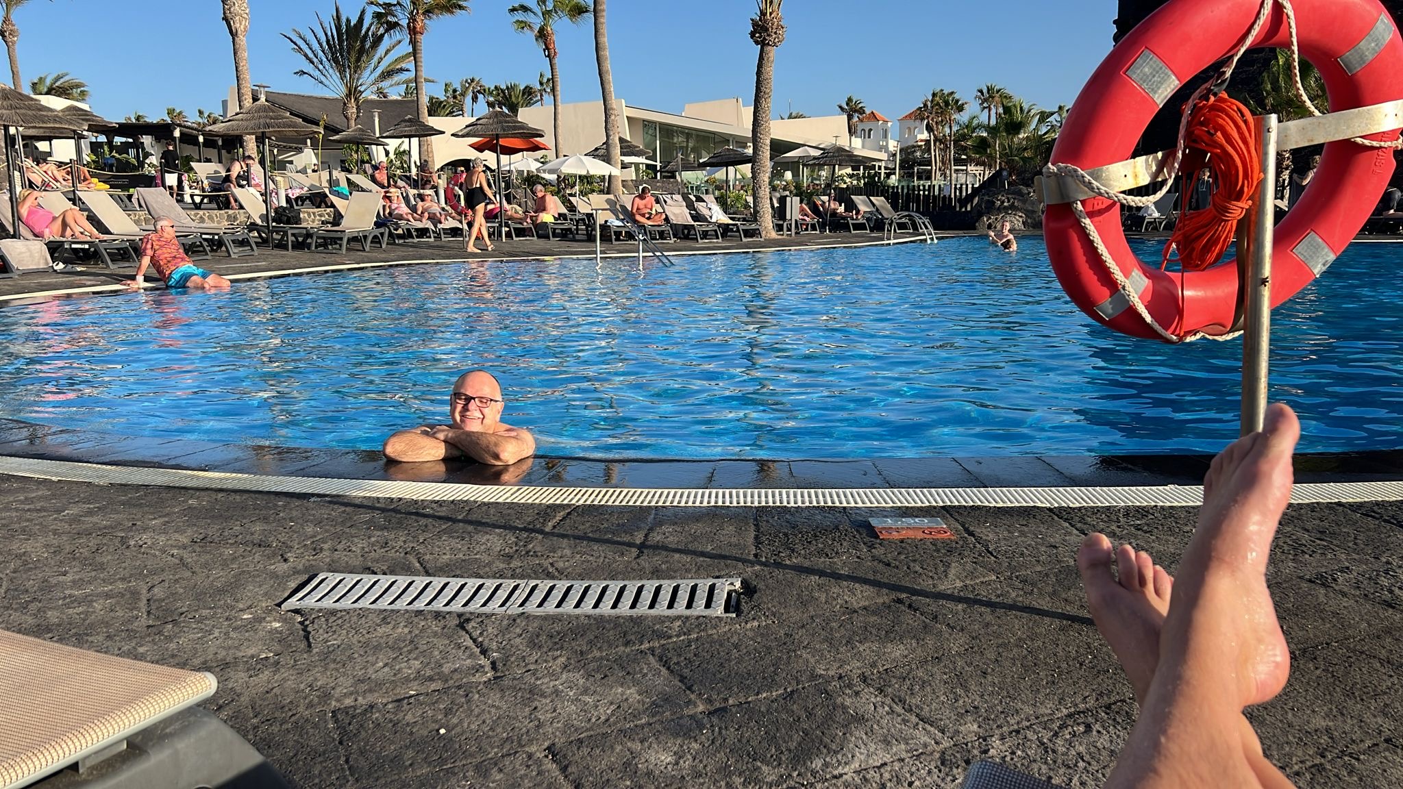 Ik was tegen een uur of half acht mijn bed uit en Onno iets later. Onze koffers weer gepakt en naar de receptie gelopen. Daar alles neergezet. En onze dag begonnen. Eerst gezamenlijk ontbijten. Na het ontbijt is Onno richting Corralejo gereden. Sandra, Bo en ik hebben nog bij een ander gedeelte van het hotel koffie gedronken en geluncht. Daarna Bo en Sandra richting het strand en ik heb bij het zwembad gelegen.